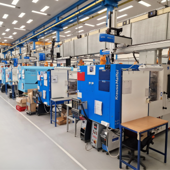 L’atelier d’injection plastique comporte 28 presses avec des forces de verrouillage allant de 35 à 1 000 tonnes. Celles-ci nous permettent de réaliser des pièces moulées de 0,5 g à 3 500 g. Nous travaillons avec tous les thermoplastiques standards (PE, PP, PS), ainsi que les thermoplastiques techniques (ABS, PA, PA6, PA66, PC, PBT, PMMA, POM, PUR, PPS, PSU, TPE, PEEK ect.).
